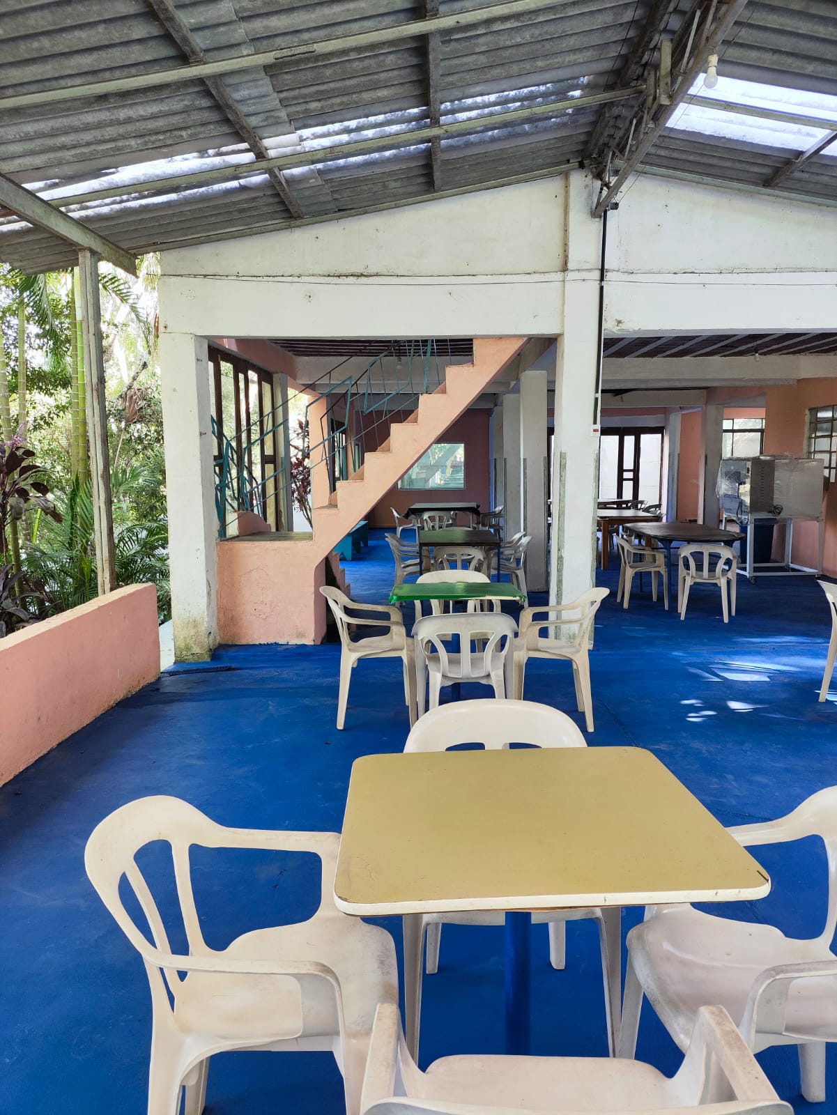 Ambientes equipados com piscina, academia, quadra para esportes, refeitório, além de uma área ampla.